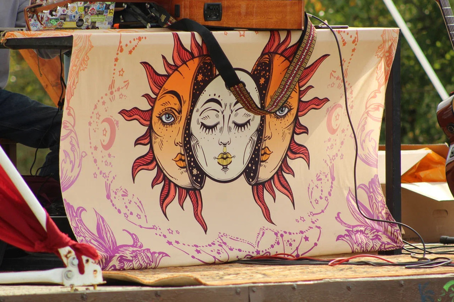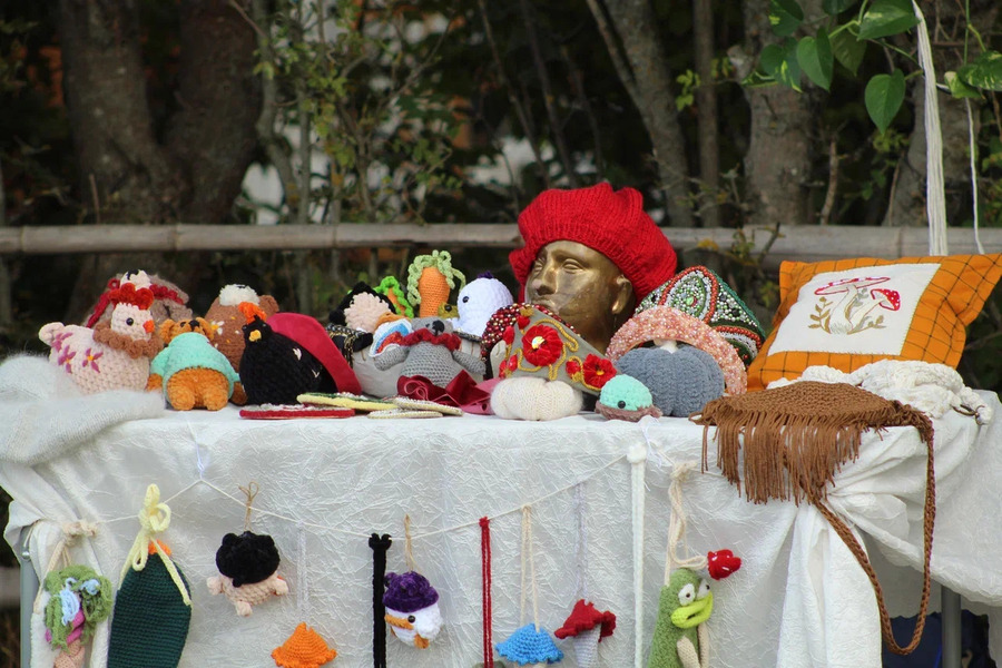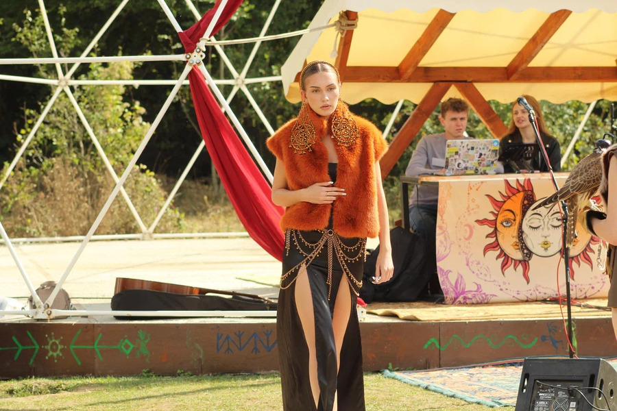 Сама долина — не менее аутентичное место. Показы проводили на коврах, а рядом с импровизированным подиумом располагались деревянные домики с едой и сластями, кузница, магазины камней и природной магии. А самое главное — минибутики крымских дизайнеров под открытым небом, где гости фестиваля могли купить понравившуюся вещь с показа.