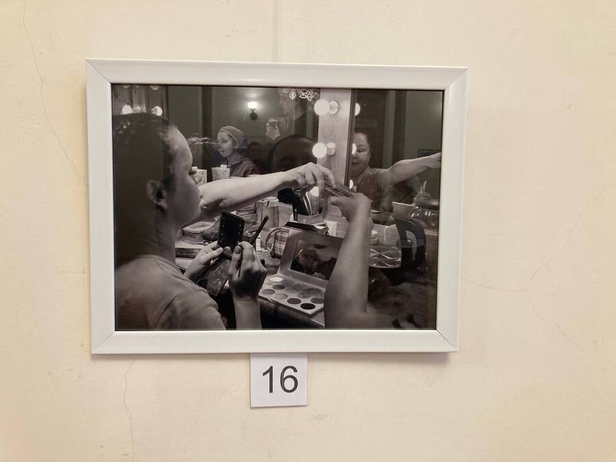 Алексей Бурнасов и Роман Лазарев выставили работы на церковную тематику, представляя достаточно интересную палитру фотографий. Журналистка Мария Старостина, ставшая членом фотоклуба в прошлом году, на текущей выставке представила снимок, на котором запечатлела гримёрную Театра юного зрителя. Работа, по словам Матвеева, заставляет думать и «не для всех».