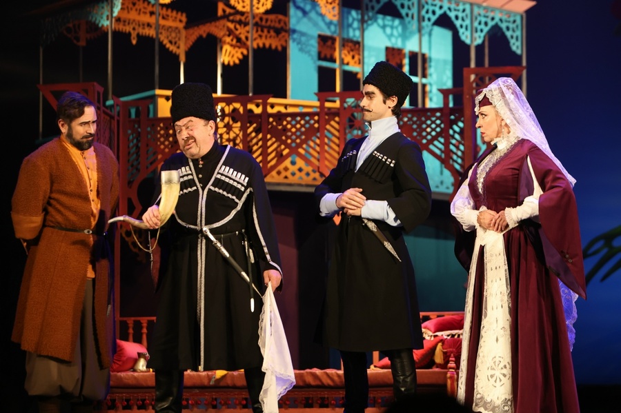 «Ханума» (12+) от художественного руководителя театра им. Луначарского Григория Лифанова, которую он, к слову, запустил 14 лет назад, а потом вывел из репертуара на четыре года, — очень напоминает топовые советские комедии Эльдара Рязанова и Леонида Гайдая.